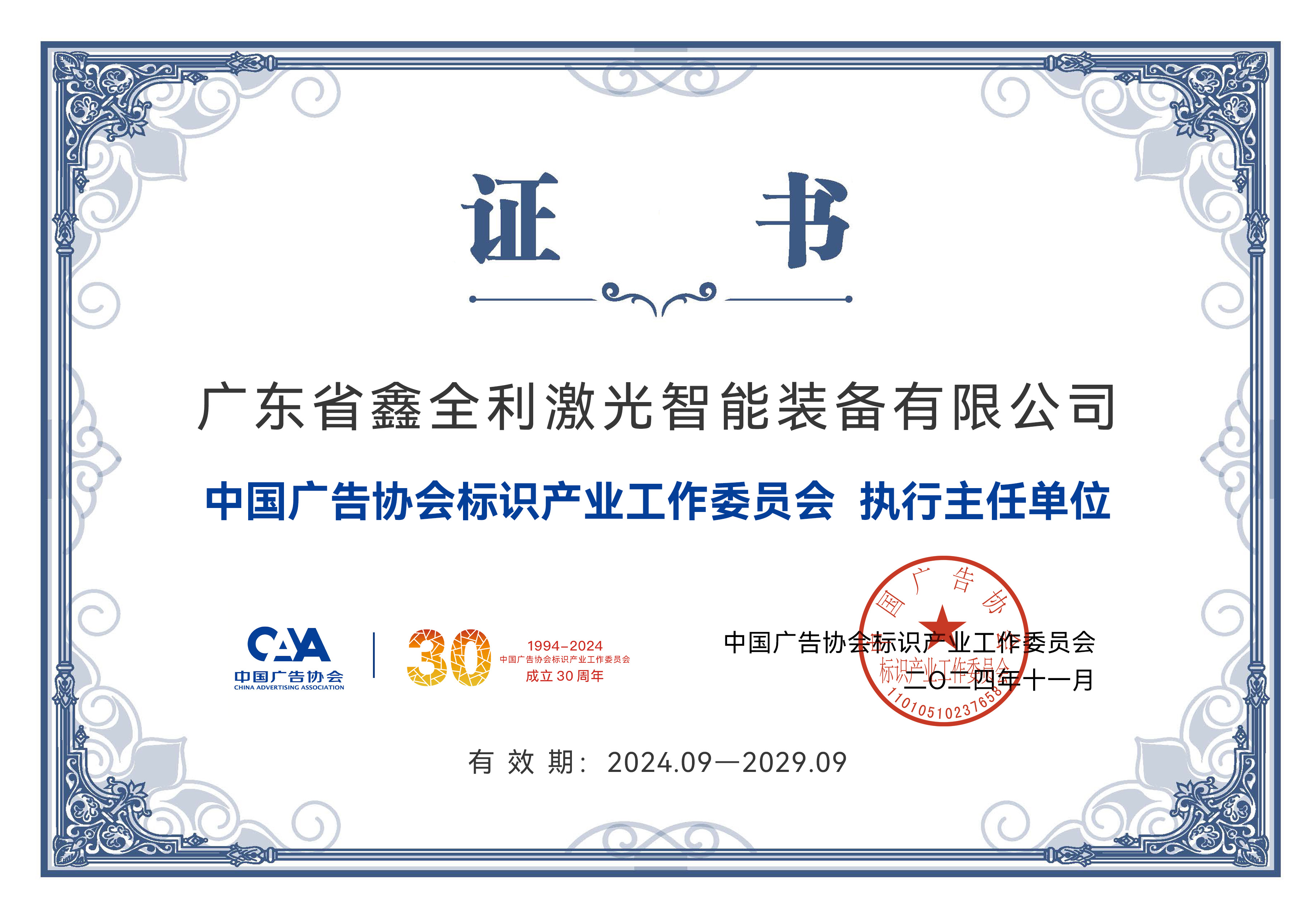 榮耀丨鑫全利激光當選中國廣告協(xié)會標識產(chǎn)業(yè)工作委員會執(zhí)行主任單位!