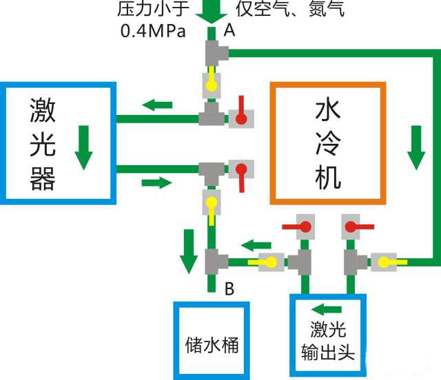 同時(shí)在春節(jié)假期等節(jié)假日或長時(shí)間停電期間,請(qǐng)將激光器和水冷機(jī)相關(guān)管路里面的水排空。