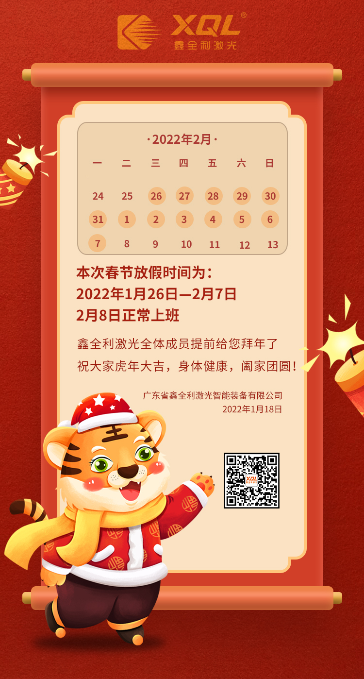 【鑫全利激光春節(jié)放假通知】2022年1月26日-2月7日放假